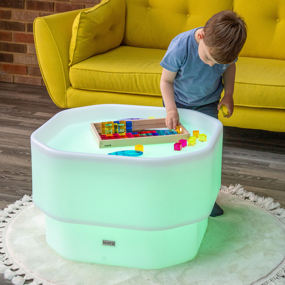 Our light-up colour-changing Discovery Glow Mini Tuff Table is designed to fit mini tuff tray accessories, while remaining compatible with the tickit Discovery range.