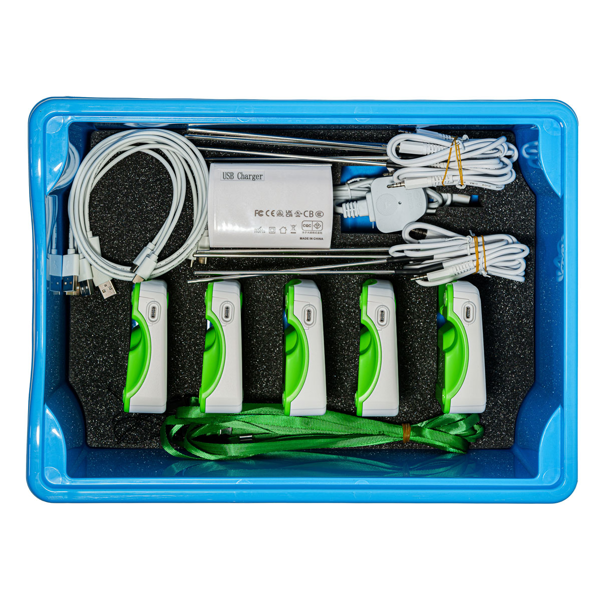- 5x Data loggers - Each Data logger with 4 integrated sensors (Temperature, Light, Sound & Heart Rate Pulse Sensor)
